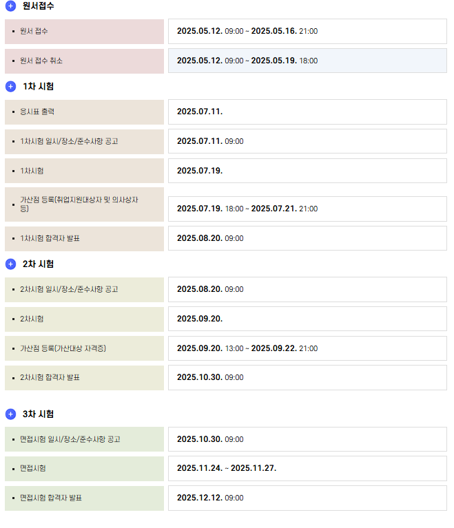 2025년 7급 공개경쟁채용 시험일정